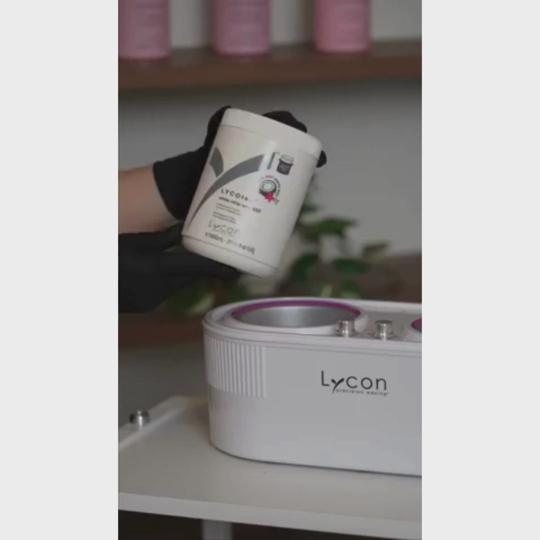 WARNING: Discontinue use of this product if any adverse skin reaction occurs. Keep away from eyes. If wax enters the eye, flush well with plenty of clean water and seek medical attention if irritation persists. Microwaves have different wattages. It is important to heat wax gradually to avoid wax overheating. If wax is overheated, the plastic jar may also overheat making it difficult to handle. The jar can actually distort and collapse. Do not handle heated jar with bare hands. Do not expose wax to naked flames. Do not heat wax for an extended period of time in jar over 100˚C (212˚F). If using the Lycon Professional Heater, the heat setting should never be over ‘8’. Be aware that heating temperatures and times may vary depending on the appliance used. Do not apply wax to skin whilst wax is very hot and runny. Only apply wax to skin at about 70 – 75˚C (158 – 167˚F). Do not use wax on sunburnt skin, moles, varicose veins, broken, irritated or inflamed skin.